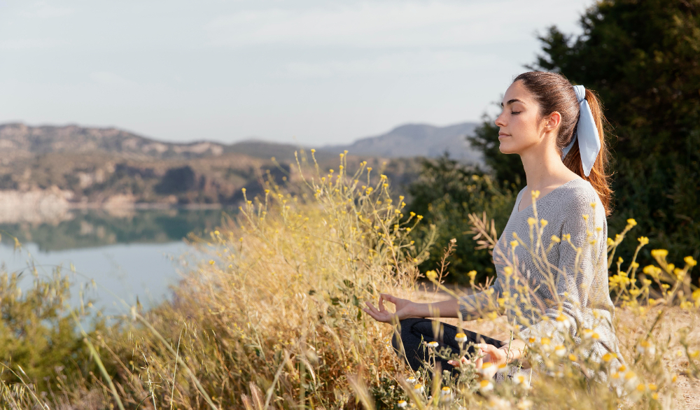Meditating in nature is twice as effective. It combines mindfulness with the stress-relieving powers of your environment. Find a quiet spot, sit comfortably, and focus on the sounds around you.