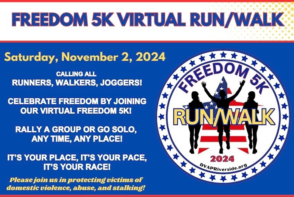 The Domestic Violence and Abuse Protection (DVAP) organization invites all runners, walkers, and joggers to participate in its Freedom 5K Virtual Run/Walk on Saturday, November 2.